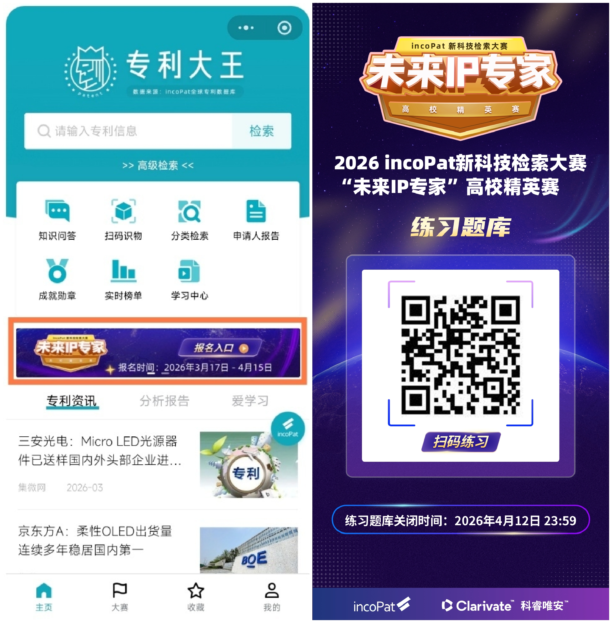 正值2026年世界知识产权日来临之际,为提升我校师生的知识产权素养,以高质量知识产权赋能学校创新发展,青岛农业大学图书馆承办第八届“incoPat新科技检索大赛”——“未来IP专家”高校精英赛。大赛面向全国高校师生,以“崇尚发明创新,尊重知识产权”为理念,通过线上实战竞技,锤炼专利检索实操技能,挖掘未来IP之星,为企业与行业输送高素质知识产权人才。